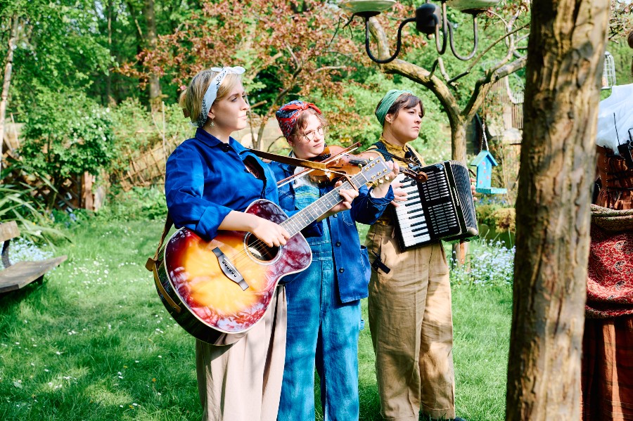 Our evening began with music. Interspersed throughout the performance, the music was melodic and well executed. A few lines have stayed with me, but I generally found the songs a relaxing backdrop to the story, as was the birdsong that accompanied the outdoor sections of our dusk promenade. The music propelled the action, and in some cases our movements, forward, but initially it set the scene. We were introduced to Betty and her family before different sections of the audience began to follow separate strands.
