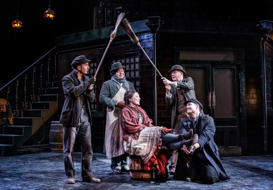 Here, the opening flourish of the Overture brings to life Madeleine Boyd‘s statically-versatile set, an evening at Covent Garden – it will be adapted, with clever minimalism, as a Tottenham Court Road tenement, Higgins’ sitting room and phonetics laboratory, an Ascot racecourse enclosure, Wimpole Street, an embassy ballroom and a country house garden – where the intermingling patrons from the public house, flower market and Royal Opera remain as immiscible as oil and water, separating on the rigid dividing lines of English social class. This was the narrative upon which George Bernard Shaw based his pithy 1913 play, Pygmalion, the immediate source material for all subsequent dramatic interpretations.
