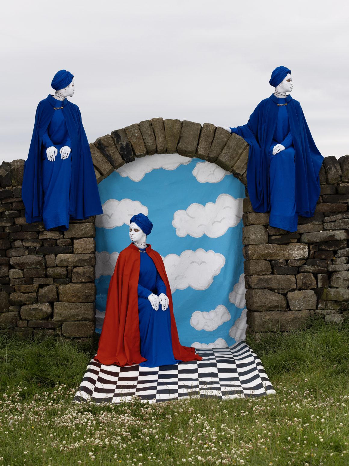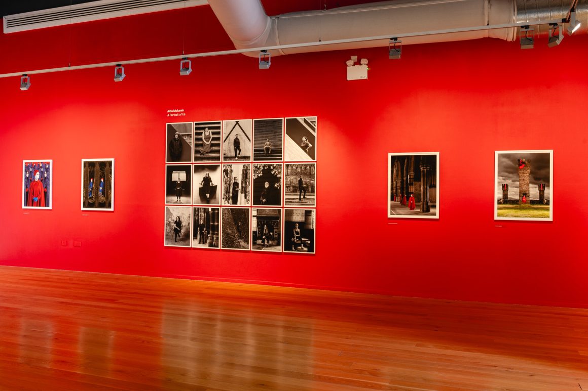 At the heart of the exhibition is The Necessity of Seeing, a major new collection of constructed images by the acclaimed Ethiopian photographer Aïda Muluneh. Her brightly coloured montages borrow from film production. The primary colours used reference the bright colours of Ethiopian churches, whilst filmic elements include a model, make up, costume, props and stage lighting. The framework in these photographs connect to both the lives of unsung heroes Muluneh photographed in Bradford, Cardiff, Belfast and Glasgow, and to wider social issues. One wall has her bright images surrounding a matrix of black and white photos of these community heroes.