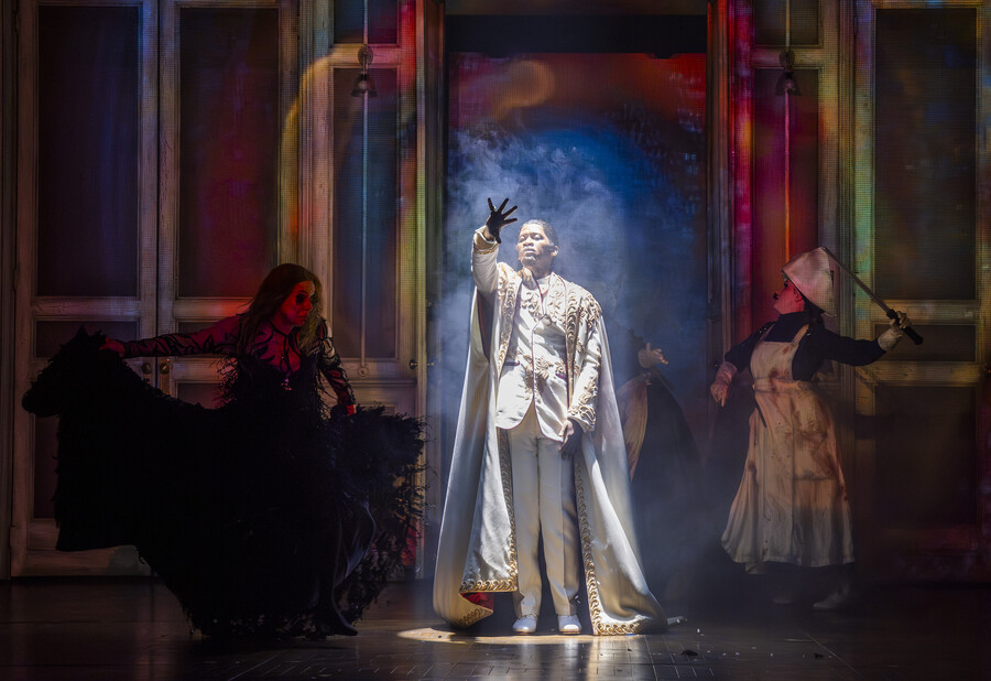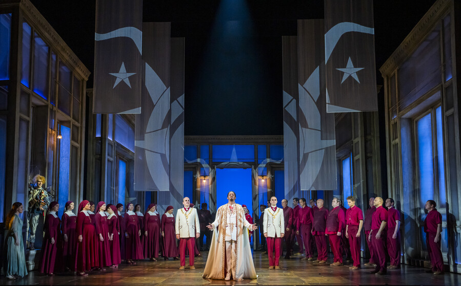 Priest, Msimelelo Mbali as Sarastro and Tom Smith as First Priest with members of The