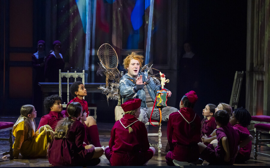 Emyr Wyn Jones as Papageno with the children from The Magic Flute