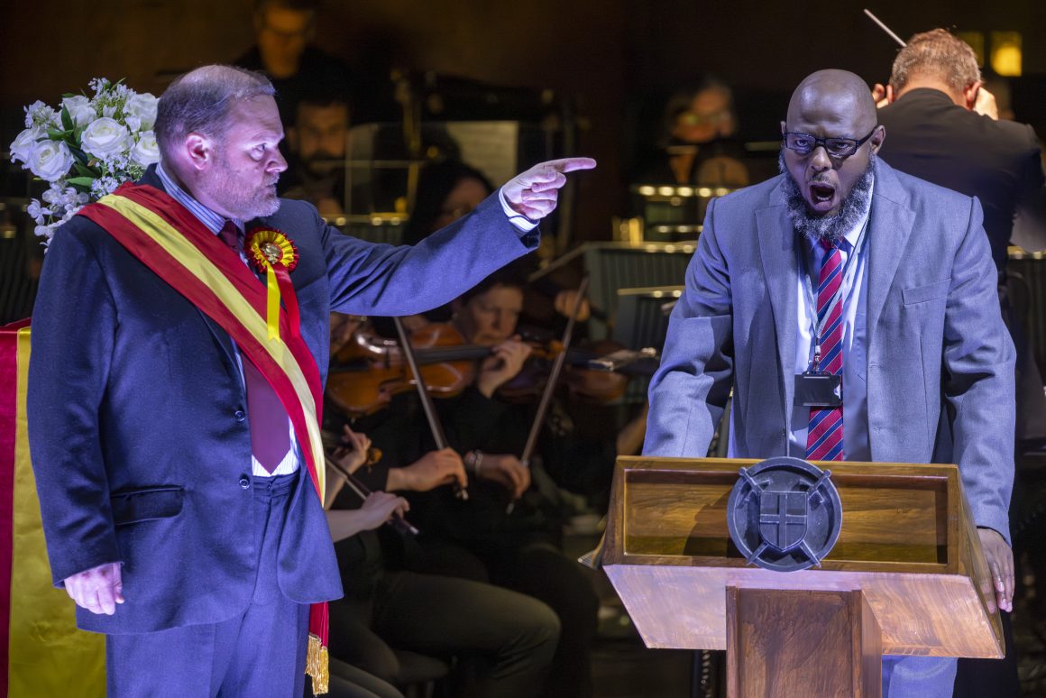 This took place towards the end of Act One, shortly before the interval in St George’s Hall, Bradford, because it is part of Opera North’s contribution to Bradford 2025 City of Culture before it goes on tour, ending up at London’s Southbank.