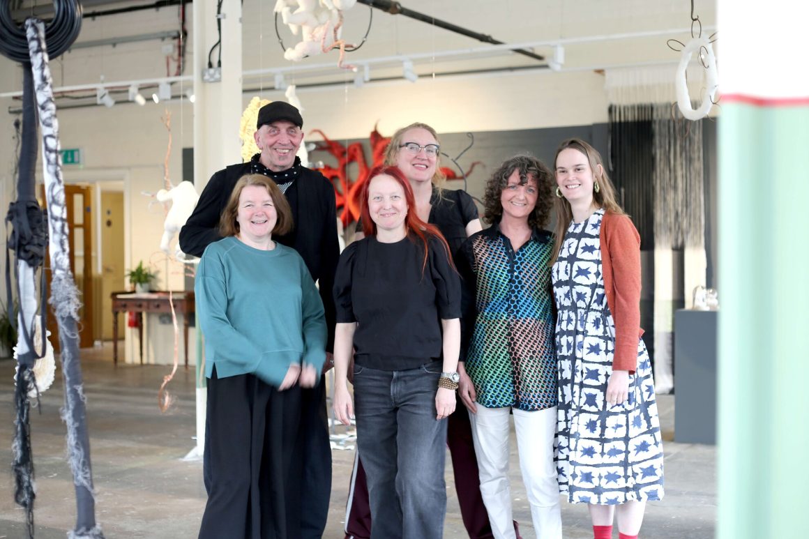 Loops exhibiting artists: L to R-back-Andi-Walker-Gea-van-Eck. Front-L to R-Jane-Claire-Wilson-Monika-Loster-Hanneke-van-Broekhoven-and-Hannah-Robson_
