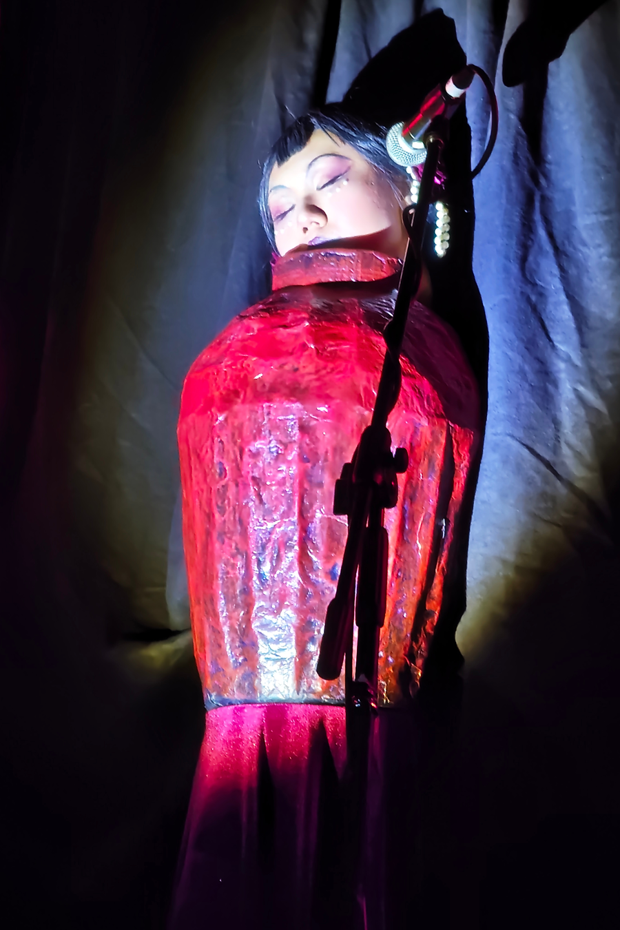 Runxuan Yang’s penultimate performance of the night, as a ‘wise woman in a vase,’ was an intriguing mix of drag, horror and cabaret. Initially, she was seen as just a head emerging from a vase, lip-syncing to a 1940s Mandarin song called ‘Rose Rose I Love You’, followed by a series of jokes and heckling of the audience as the woman searches for an Englishman to marry for a visa… before we knew it, we reached her final act (in a scene reminiscent of the Japanese horror film The Ring), in which she emerges from the jar, crawling towards the audience with blood spurting from her mouth. What at first seemed like a surreal and disturbing show was, on reflection, an inescapable yet thoughtful challenge to stereotypes and the objectification of Chinese women.