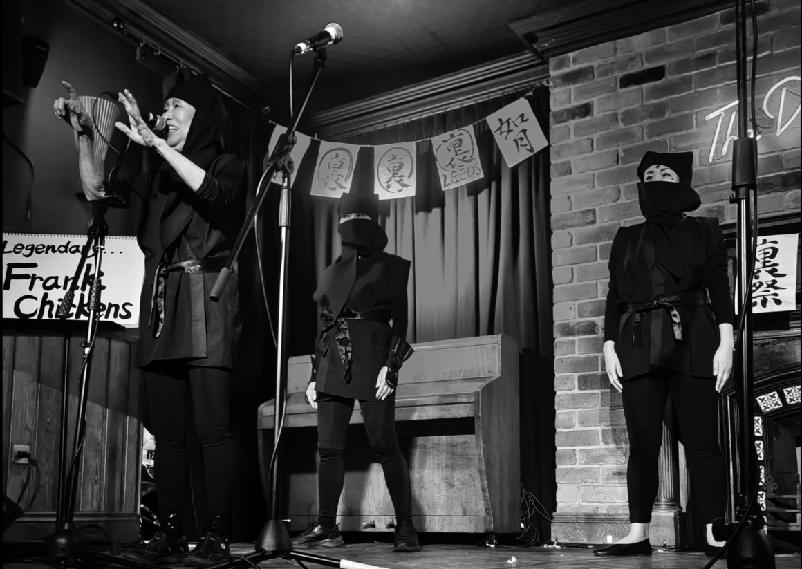 Headlining the lineup were Frank Chickens, a music duo formed 40 years ago, who brought together all the artists from earlier in the night for a choreographed and costumed performance that was playful, clever and wonderfully unpredictable. Their energetic rendition of their debut single from 1982, ‘We Are Ninja (Not Geisha)’, echoedthe ‘wise woman in a vase’ in gleefully exposing and challenging perceptions of Japanese women.