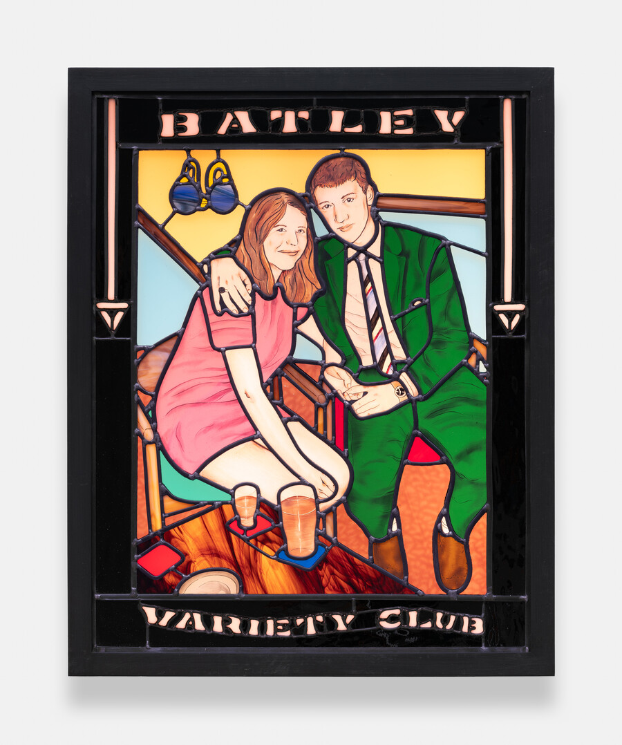 Jim Brook in Two Lovers (2023) has looked back to the hey day of the Batley Variety Club, using stained glass to immortalise his grandparents, whilst Conor Rogers draws upon betting slips to explore working-class identity.