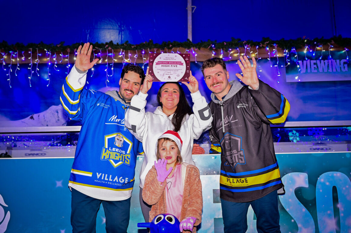 White Rose Shopping Centre hosted a charitable ice skating event on Wednesday 3rd December, inviting ice hockey fans to take to the rink with members of Leeds Knights in return for a small charity donation to benefit local charity Kidz Klub.