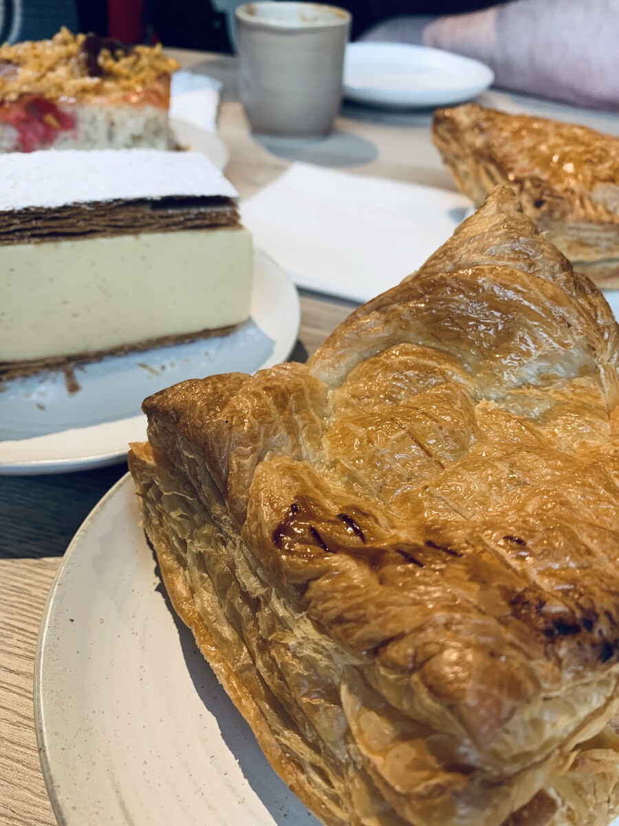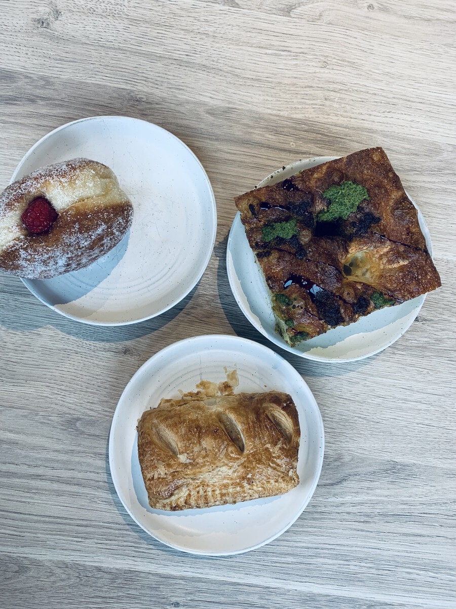 Now onto the sweet goods. Vanilla slice was my dad’s favourite, so I had to try this. According to Bake’s social media video, this takes the longest to make, with its homemade custard and millefeuille layers. It was absolute heaven, indulgent custard oozing out with every bite of the crispy layers. Dad would have approved. In honour of childhood memories, I had to also try the raspberry jam doughnut. The filling was thinner than the standard doughnut; it was more of a syrupy consistency, and there’s the twist: its tangy sweetness was divine.