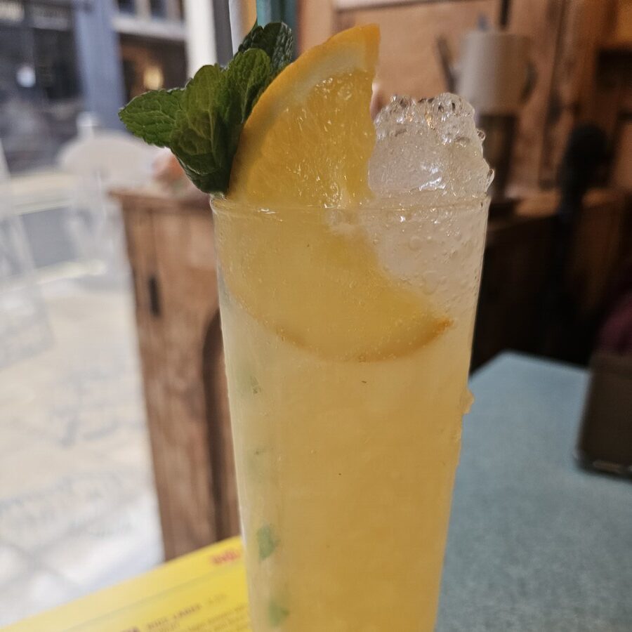 Mandarin Rickey (mocktail made up of CleanCo 0% Spiced Rum, mandarin, mint and lime)