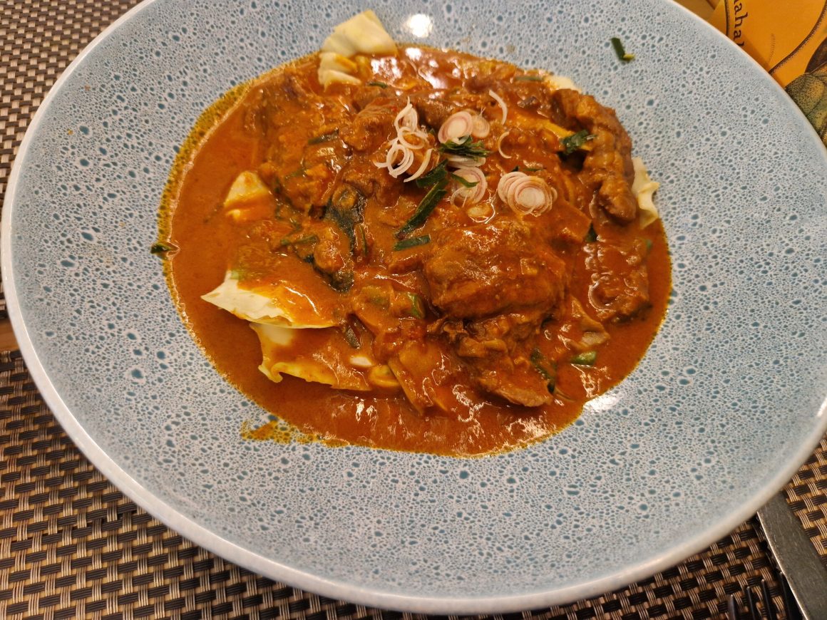 The massaman curry was good; a pleasing balance of potato, chicken, carrots, onion and nuts. The danger of massaman is that the potatoes go mushy or are too firm. These were just right. However, the stand-out dish was the Melting Beef. I could see why this was a signature dish. At £18.99, this was more expensive, but well worth the extra cash. Large pieces of beef had been slow-cooked until meltingly tender in a rich red curry sauce. The vegetable element in this dish was provided by green beans and cabbage. In Thailand, cabbage is everywhere, but you seldom find it in UK Thai restaurants. Maybe it’s such a staple that it gets ignored, but it made a wonderful addition to this dish.