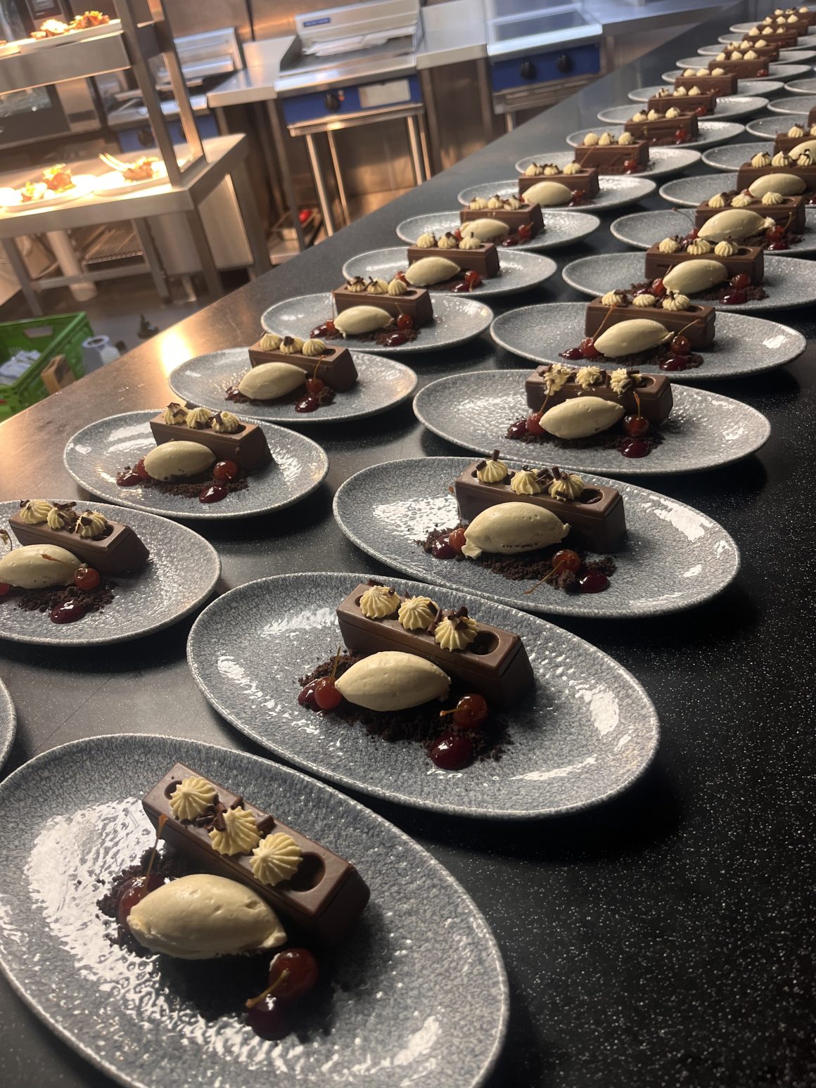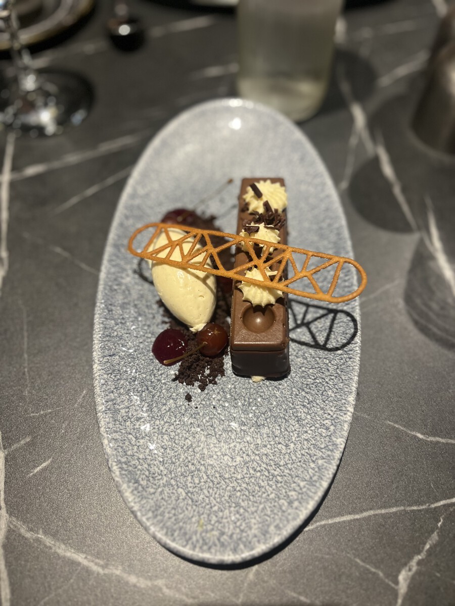 Despite being full, dessert was too good to pass up: a decadent dark chocolate semi-sweet marquise, with the (literal) cherry on top heartily soaked in booze, cutting through the tart berry reduction that was served alongside. Washed down with a little fruity red wine, it was the perfect end to a wonderful evening of top-class hospitality and culinary novelties.