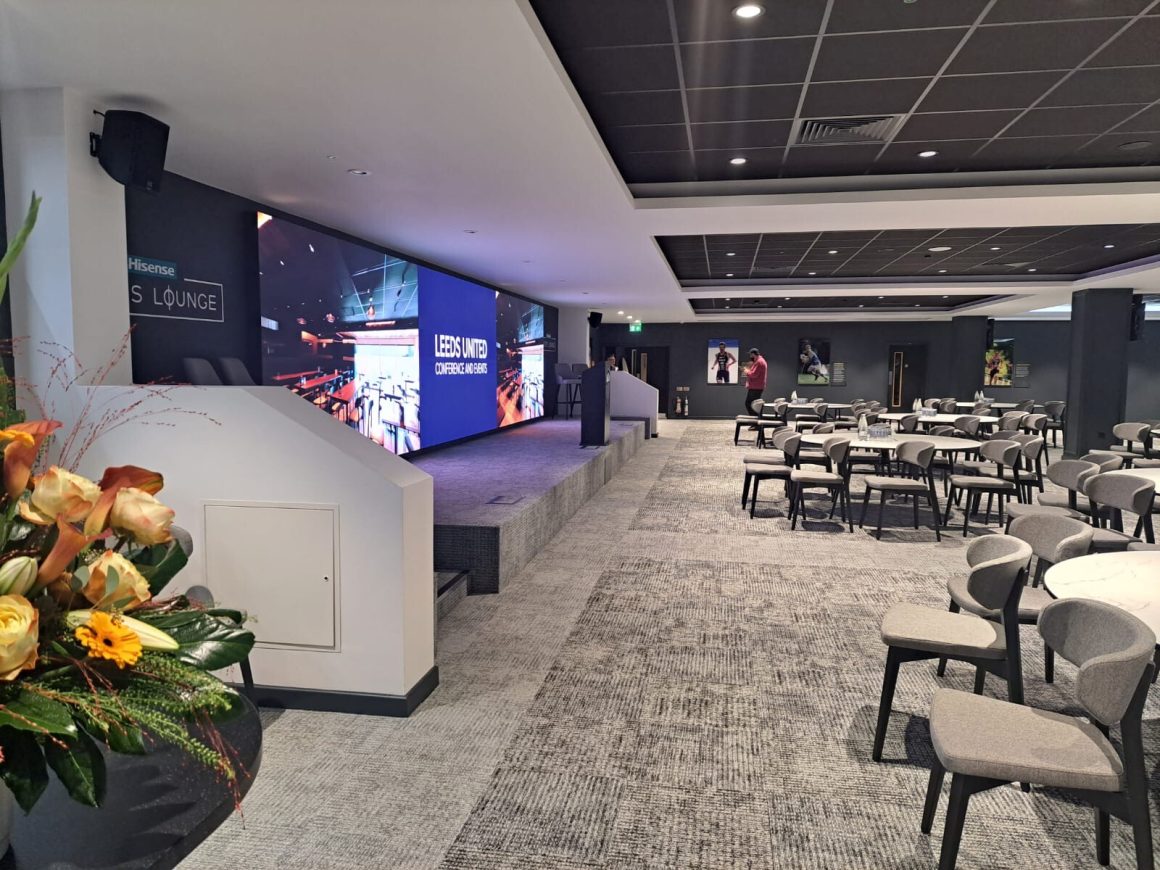 I’m immediately reminded of a lido I visited once on holiday in France, staring at the wall the other end wondering if I had that big a lap in me or whether I’d drown trying to get there. We’re told as we’re taken around that it can comfortably accommodate 300 guests for non-matchday events. I would argue that if you cleared the tables Leeds United could start a game inside with enough room for an audience and snack booths, maybe a travelling circus.
