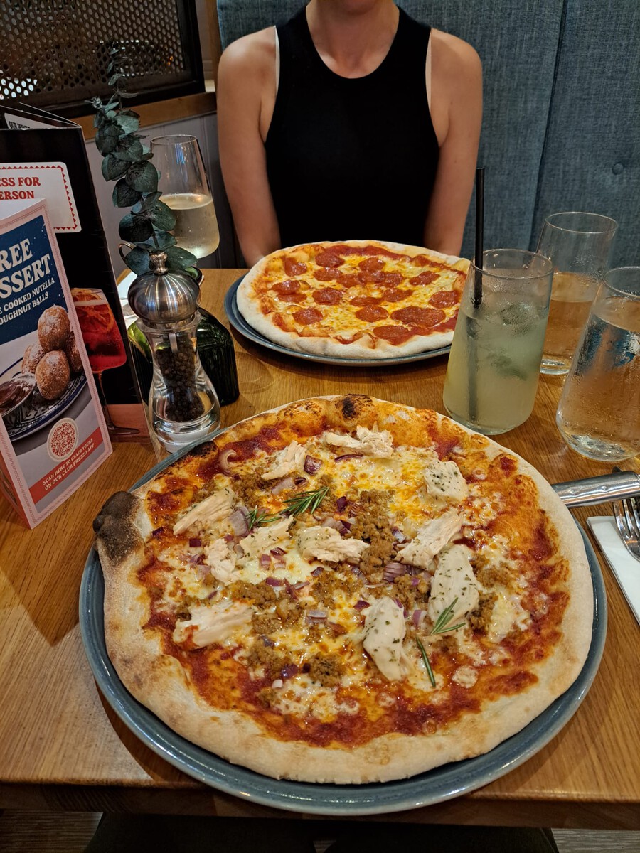 The main menu somehow manages to be both concise and generously varied, and the pastas, pizzas and dishes “from the oven” are clearly marked. For the mains, we chose two Prezzo signatures – the Classic Pepperoni and the Tuscan BBQ Chicken, which was served on a calabrese tomato base and topped with sausage crumb and a drizzle of honey for a sweet and smoky finish.
