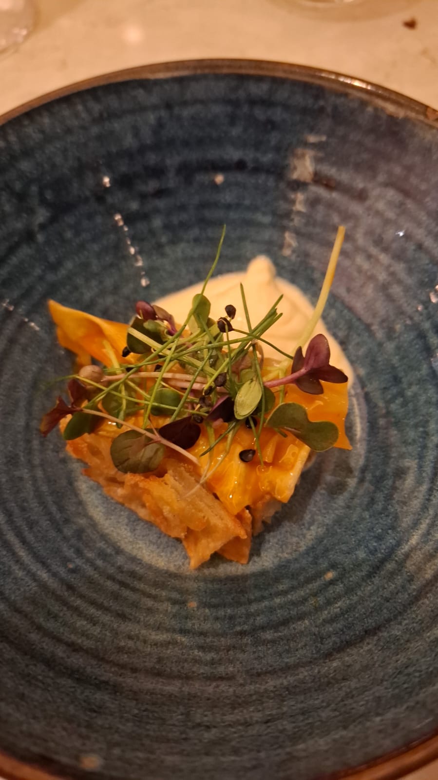 Our waiter, James, guided us superbly well through the six courses. He was very knowledgeable about the food as well as the matched wine for each of courses two to five – and answered all questions, settling any doubts. (My friend Victoria is vegetarian. Those questions are important!)