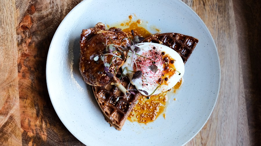 Elsewhere on the menu, the divine Duck Waffle channels an American-style pig-out and serves up crispy confit duck leg from Levin Farm with a malt waffle, maple and chilli sauce and fried duck egg. The Brunch O’ Muffin is another revelation, designed to leave a certain iconic golden-arched brand’s version for dust with its rare breed pork pattie, Cheddar, crispy onion and fried egg.
