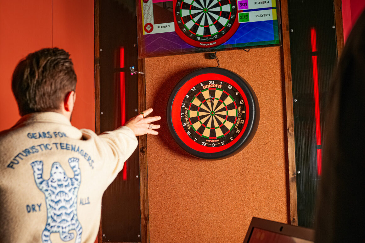 Salon Madre also possesses an interactive, electronic dartboard, which people were constantly surrounding. They would name themselves (sometimes with emojis) and then score points, which the board then counted and declared a winner after many rounds. I imagine that these games will be a good way for people to relax after work, and there was no doubting that Salon Madre was a trendy bar, already completely packed on opening night.