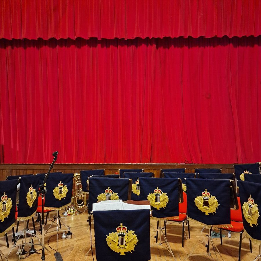The theatre was a symphony of royal red, with the band in their finest, most immaculate dress uniforms. Their golden instruments caught the light, glinting like they were sharing a cheeky, charming smile with the audience.