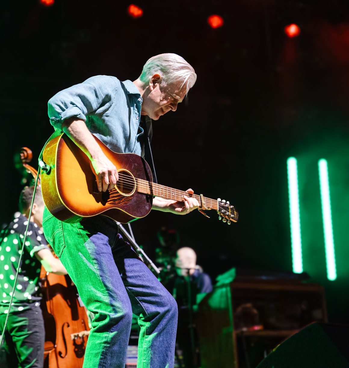 Musically, the show was rich and textured. The band incorporated a range of instruments and arrangements, giving fresh energy to old favourites. And of course, the crowd erupted for the timeless anthems: “Real Gone Kid,” “Dignity,” “Fergus Sings the Blues” these weren’t just performed; they were celebrated. I couldn’t resist the urge to FaceTime my mum during her favourites “When Will You (Make My Telephone Ring)?” And of course “Dignity”.