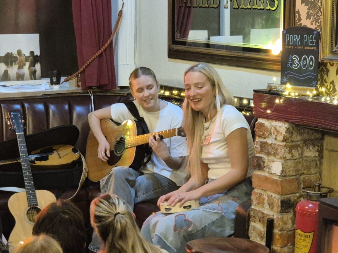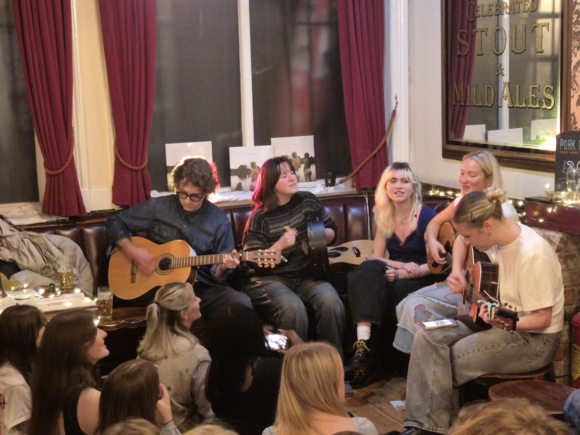 The final guest of the night to join them on the sofa is Leeds based Lois, who also has a guitarist for company and, like the main act, has also had a lifetime worth of bad dealings with a label to contend with at such a young age. She’s got a soft, honeyed, vocal style as she runs confidently through her own track ‘Phoenix’, and she is joined by the headline duo to duet on a Sam Fender track ‘Rein Me In’ to conclude her short cameo. Anyone wanting to see Lois at a full show, she has her own headline gig at Oporto in Leeds on the 30th January, which should be worth catching.