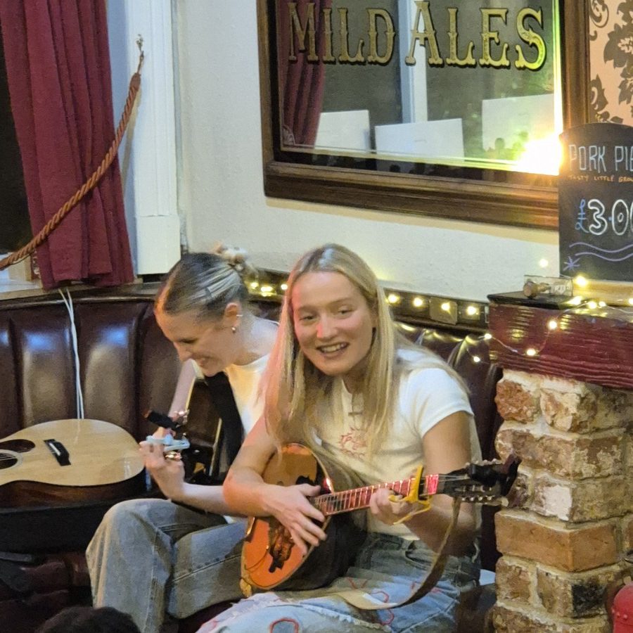 Which brings us to tonight’s show at the Duck and Drake pub at the bottom of Kirkgate, not an uncommon Leeds venue for live music, but it’s usually a tribute, or rock band in the main room, not a guerilla gig in the back-room, played on the comfy sofas, next to a roaring fire, with an audience seated on the pub floor (aside from this old reviewer leaning on the bar).