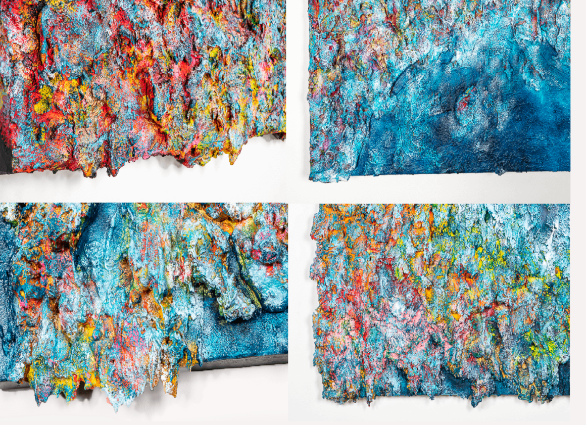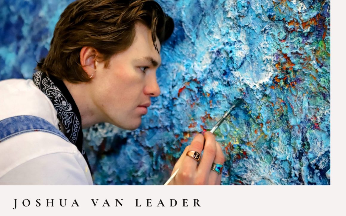 Photographs are of artwork by Joshua Van Leader and of the artist at work.