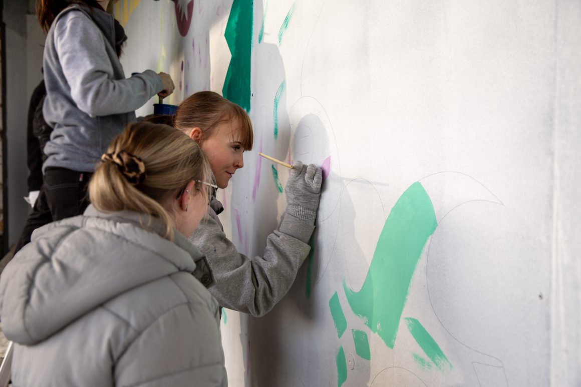 Artist Nicolas Dixon: “The dedication that the students showed was very impressive and admirable. The conditions were pretty much the coldest I’ve painted in for the 15 years I’ve been an artist. That takes a lot of character to turn up and work in those challenging conditions, so hats off to them. It was great to see some of their inner artist coming out too, the more the project progressed. They can be very proud of what they’ve achieved in helping create something that will be on public display for many years to come.”